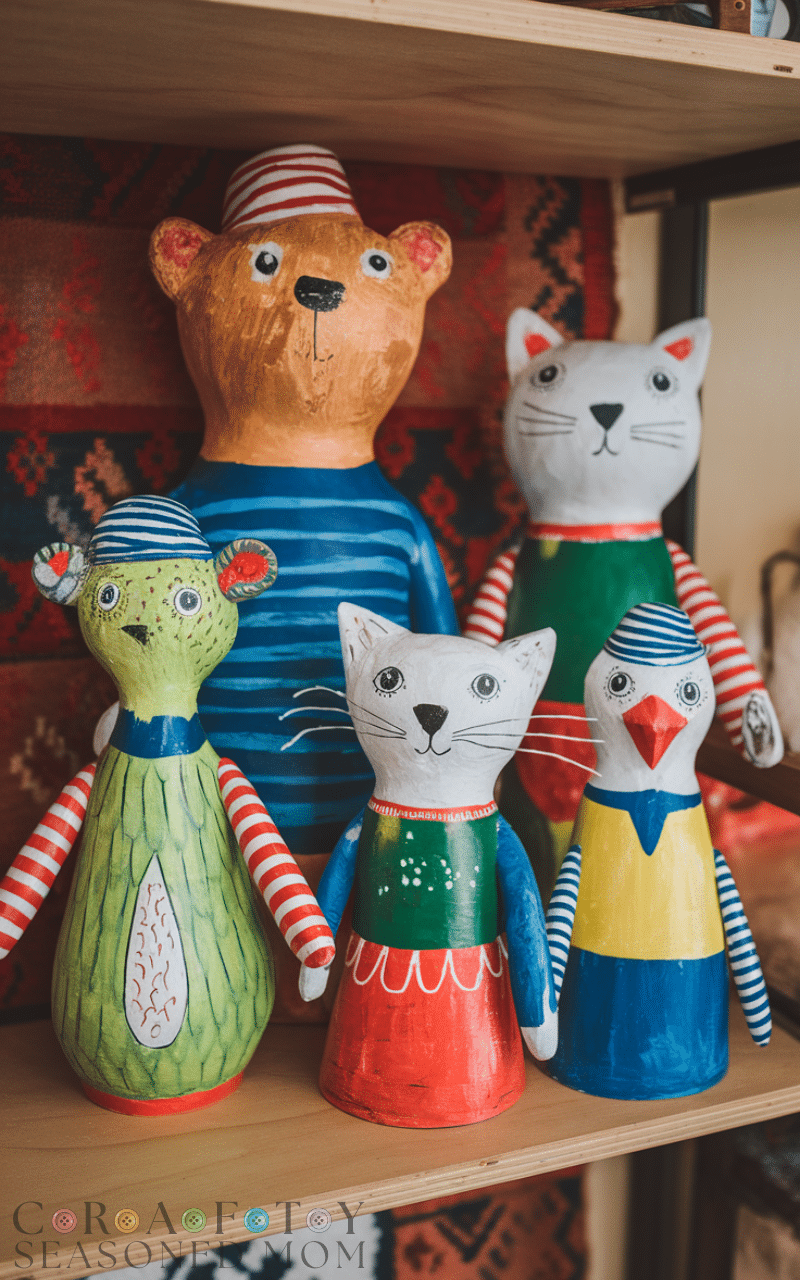Seasonal paper mache dolls ideas reflect holidays and times of the year. Think winter dolls with coats, spring dolls with flowers, or autumn harvest characters. These dolls are perfect for decorating your home throughout the year. Seasonal paper mache dolls ideas keep your décor fresh and handmade.