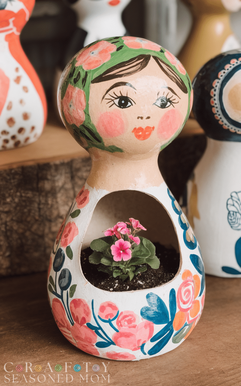 Functional paper mache dolls ideas include turning doll bodies into small planters. The head or body can hold tiny plants or artificial flowers. These dolls add charm to desks or shelves. Paper mache dolls ideas like planters combine art and function.