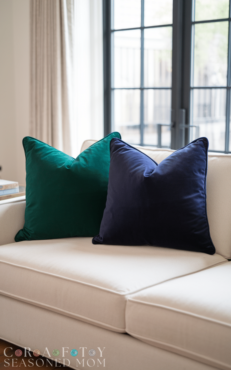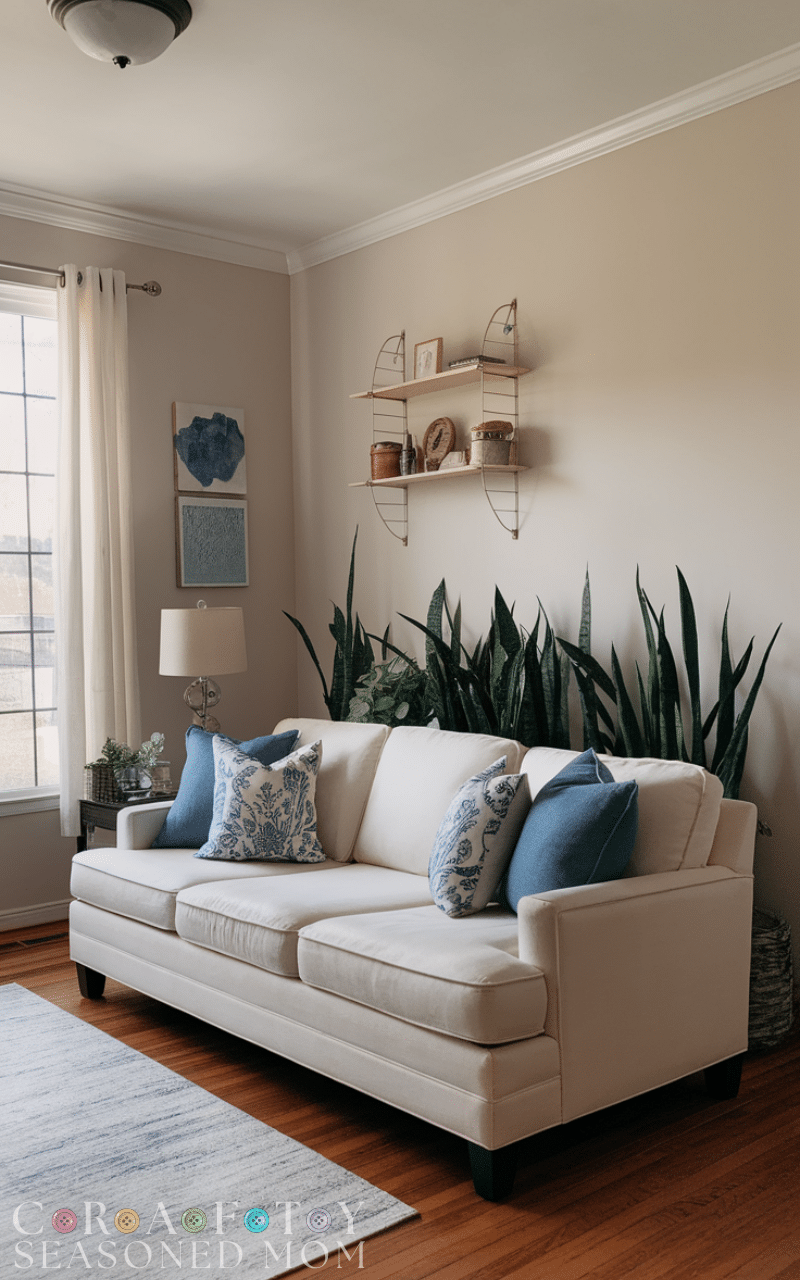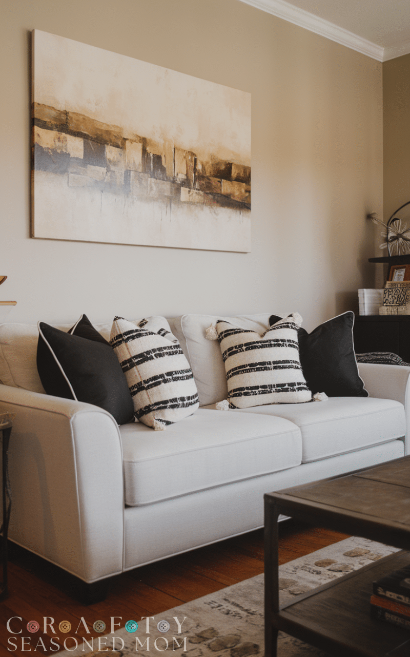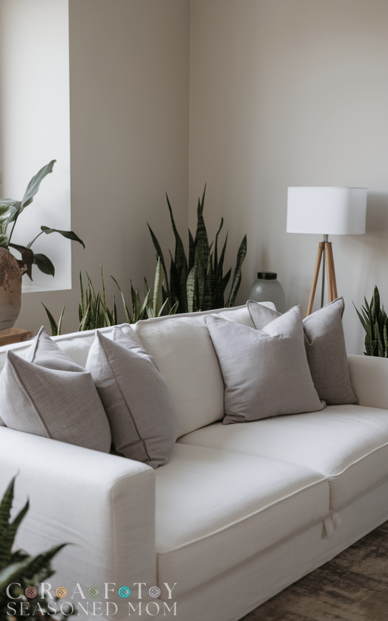 If you have a white couch and want to keep the space calm and balanced then neutral beige pillows are the perfect choice because they add a touch of warmth without overpowering the room and they blend beautifully with a white couch which makes the area feel more welcoming and relaxed while also giving a clean modern touch that never goes out of style and the best part is that these pillows work with almost any other color so you can easily switch up your decor whenever you like while still keeping your white couch as the main star of the show.