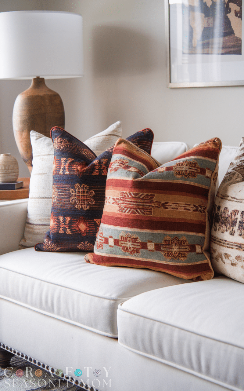 3. Patterned Global Pillows for a Travel-Inspired Look