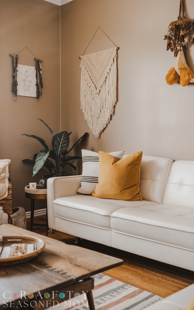And now whenever I sink into the couch with a cup of coffee or a good book I cannot stop smiling because the space feels warm and lively and even though the pillows are not perfectly aligned they carry personality and charm and that is exactly why Pillow Ideas for a White Couch inspired by touches from a Modern Boho Living Room can make your space feel beautiful and cozy every day.
