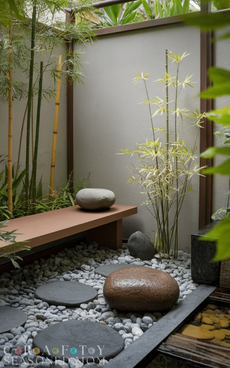 A zen meditation corner is a cool garden idea that gives you a peaceful retreat to calm your mind and soul because you can use stones bamboo water elements and a simple bench to create a quiet relaxing corner and it helps you unwind after long days and stay connected to nature and this minimal design brings harmony and balance while making your garden look elegant and serene.