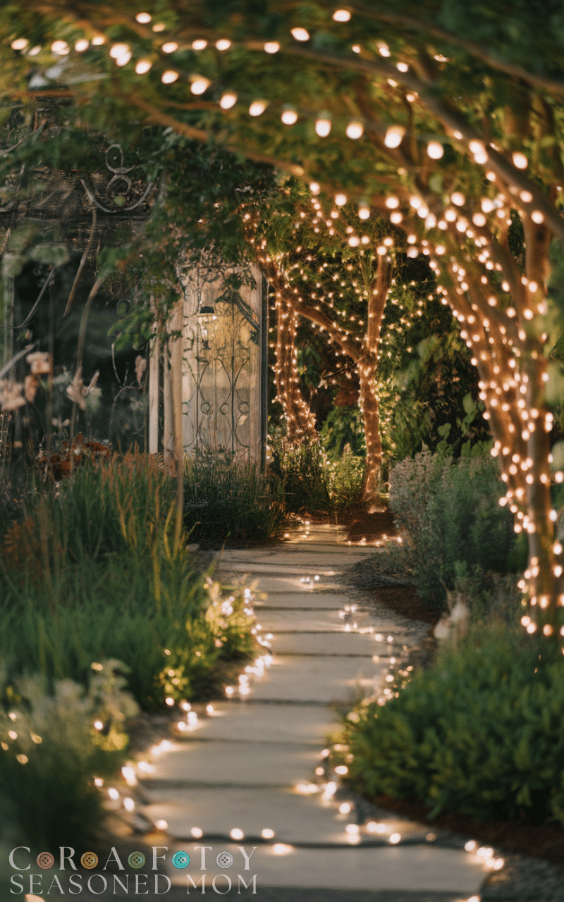 Lighting can change everything and a fairy light pathway is one of the coolest garden ideas to bring magic to your evenings because you can line your garden paths with soft glowing lights or solar lanterns and as the sun sets your garden turns into a cozy dreamy space where you can relax or host friends and this simple touch adds charm without needing expensive decor and makes your outdoor area shine.