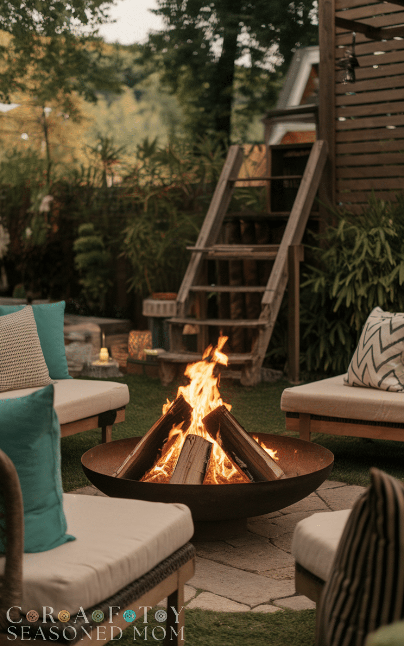 A fire pit area is a cool garden idea that brings people together on cool nights because you can arrange seating around it with comfy cushions and create a warm inviting atmosphere and it becomes the heart of your garden for chatting roasting marshmallows or relaxing under the stars and this feature makes your outdoor space usable even in chilly weather and adds a touch of rustic charm.