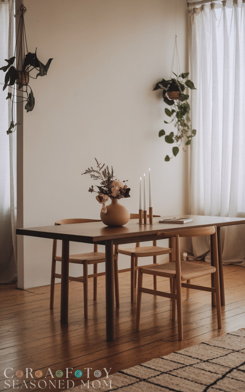 Sometimes less is more. A single elegant vase, a neat runner, or a few candles can make a statement. Minimal decor creates a clean, sophisticated dining space while being incredibly budget-friendly and easy to maintain.