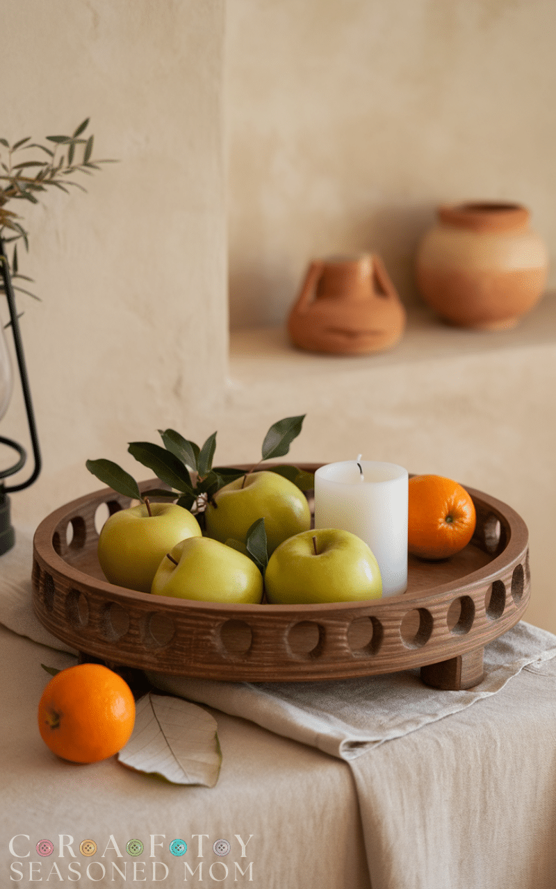 Use bowls or trays as functional decor. They can hold fruits, candles, or seasonal items while acting as a stylish centerpiece. Affordable options like thrifted pieces or DIY-painted containers make this an easy, budget-friendly way to elevate your table’s look.