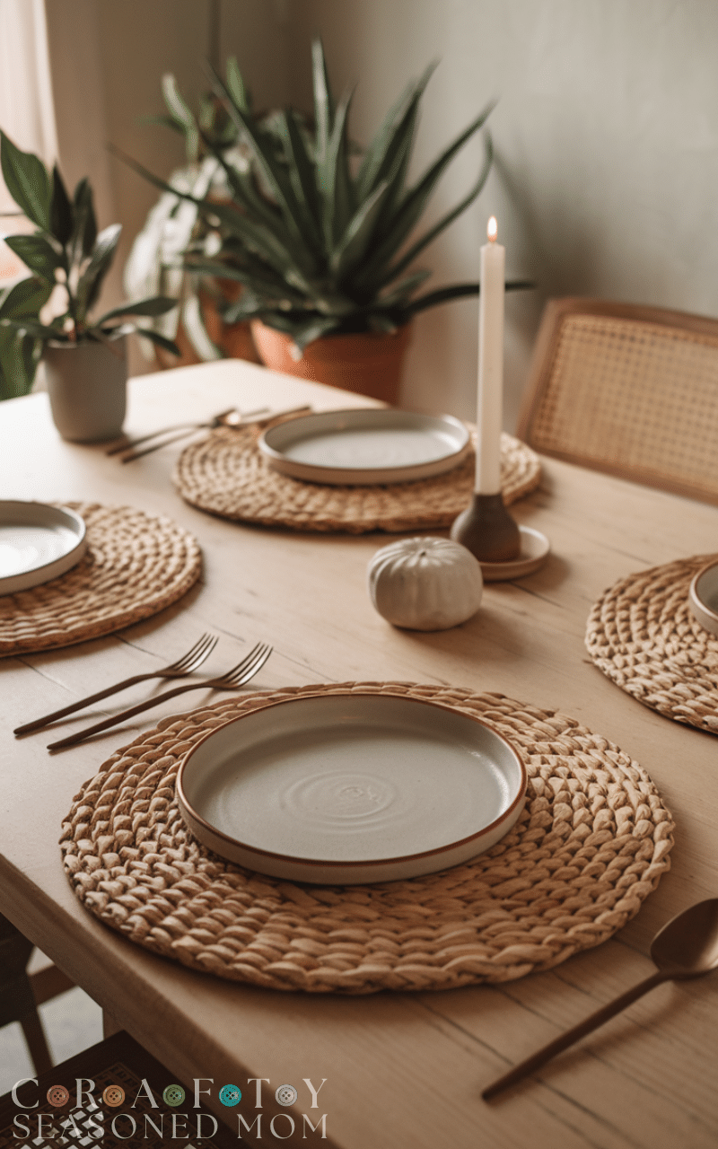Placemats instantly organize and elevate your table. Use woven, fabric, or even DIY-painted placemats for a personalized touch. They protect your table while adding style, making your dining space feel coordinated and inviting on a budget.