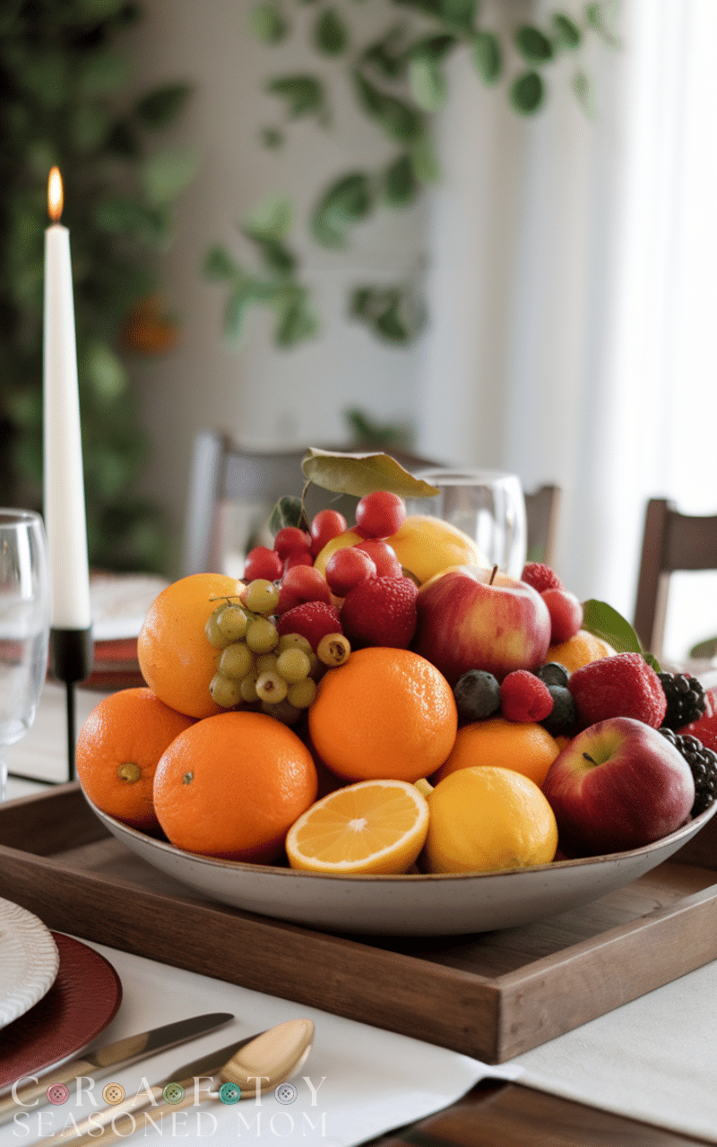 Displaying fresh fruit in a bowl is a practical and beautiful Dining Table Decor solution that adds natural color while staying functional for everyday use. Citrus, apples, or berries create a bright centerpiece that keeps your Dining Table Decor feeling fresh and inviting.