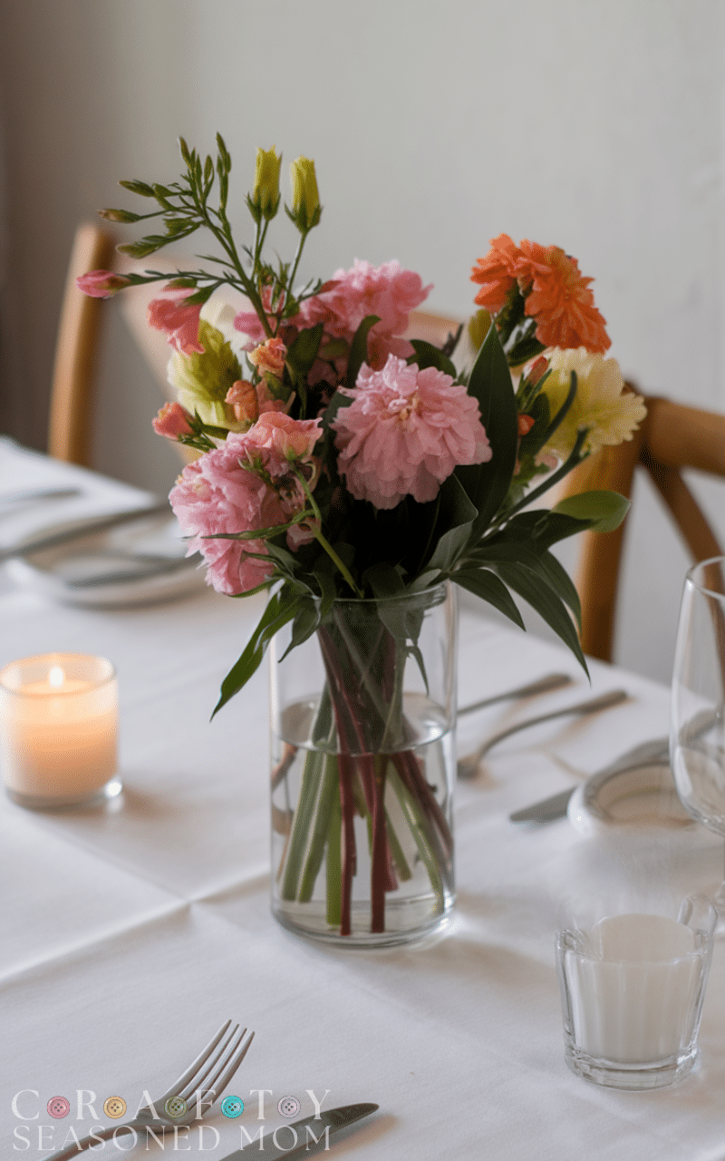 Fresh flowers are one of the easiest ways to refresh your Dining Table Decor without spending much money, because even a small bouquet instantly adds color, softness, and life to your table. I like choosing seasonal blooms or simple greenery since they make the space feel natural and welcoming while still keeping the overall look effortless and budget-friendly.