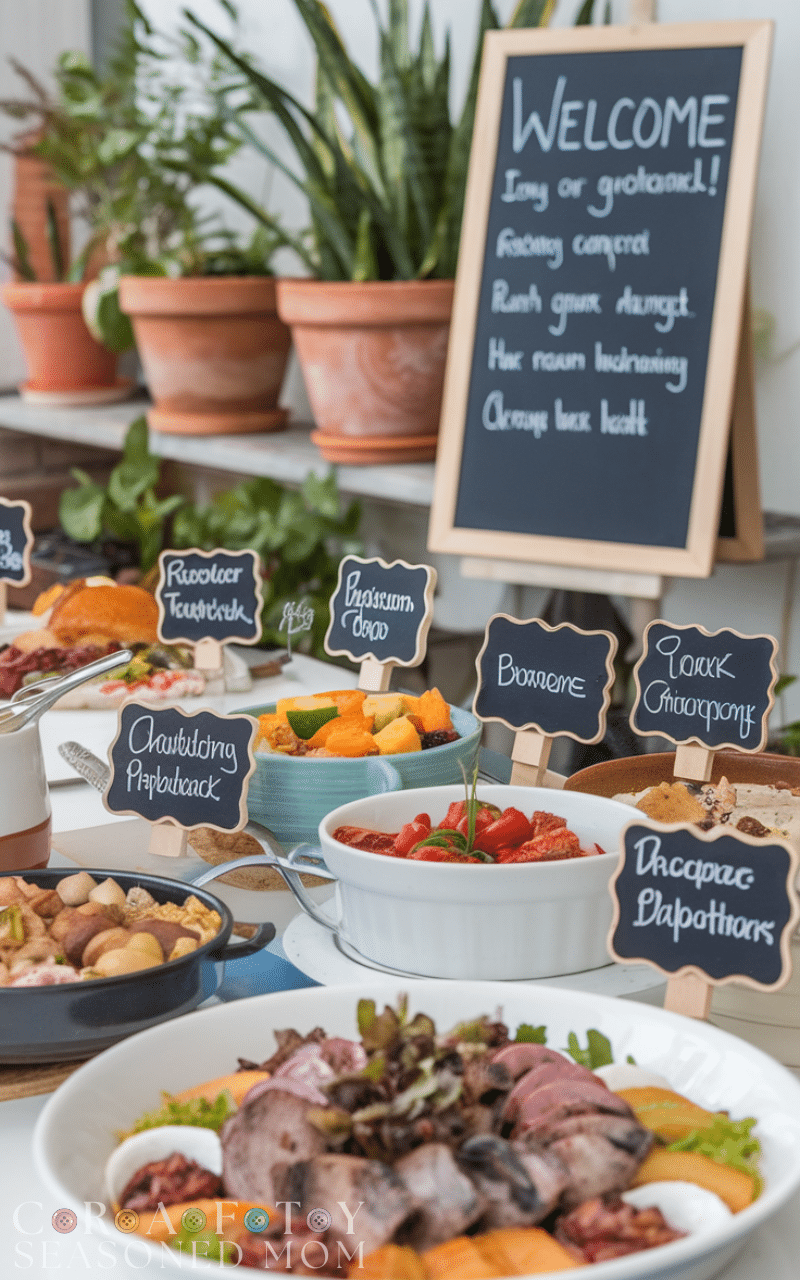Use mini chalkboards to label dishes or write a welcome message. This interactive and decorative idea is inexpensive and adds charm, perfect for casual meals or special gatherings. It also doubles as a fun conversation starter.