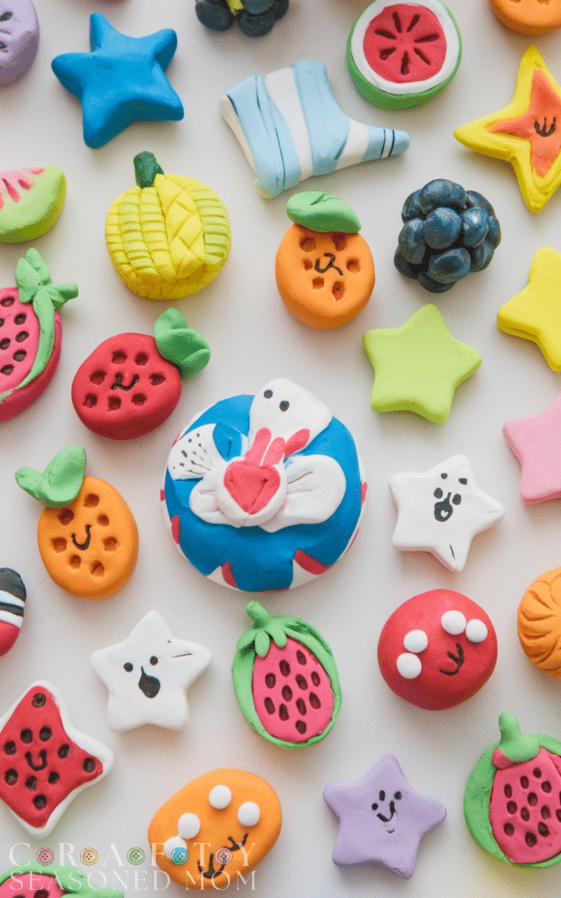 You can make cute refrigerator magnets using air dry clay by cutting small shapes like fruits animals or stars and when they dry you can paint them in cheerful colors and glue a magnet to the back and this easy air dry clay project brings color and personality to your kitchen and it is also great for kids to join in the fun.