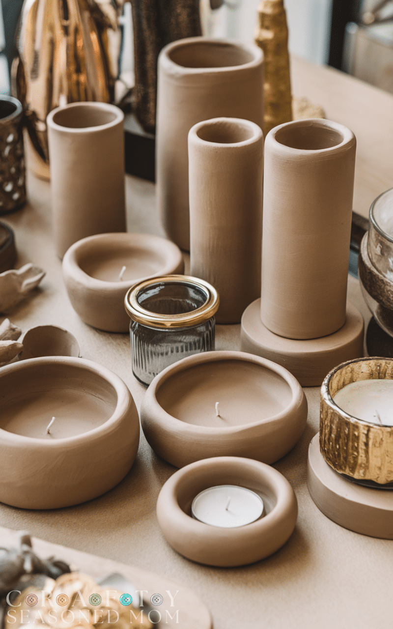 Creating air dry clay candle holders is simple and relaxing and you can shape the clay around small glass jars or make little bowls for tea lights and once dry you can decorate them with gold paint or add texture using natural items like leaves or fabric and this easy air dry clay project adds warmth and handmade charm to your home decor.