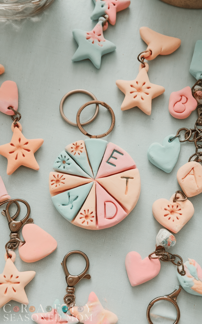 You can easily make personalized keychains using air dry clay and this project lets you create shapes like stars hearts or initials that you can decorate with acrylic paint once they are dry and punch a small hole before drying to attach a metal key ring and it is a wonderful way to make custom gifts for friends or family and this easy air dry clay project is practical and super fun for anyone who loves unique handmade accessories.