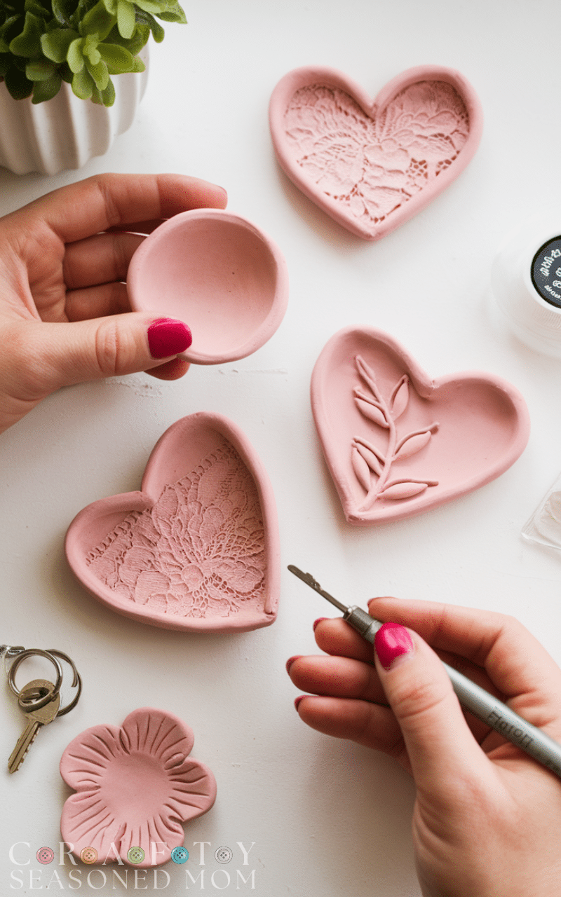 Making air dry clay trinket dishes is a simple and fun project that adds a personal touch to your vanity or nightstand and you can shape the clay into circles hearts or flowers and press textures using lace or leaves to make them more interesting and once dry you can paint them with your favorite colors and seal with a clear varnish for shine and protection so this is one of the best easy air dry clay projects for anyone who loves making small yet beautiful home accents that keep jewelry or keys organized in style.