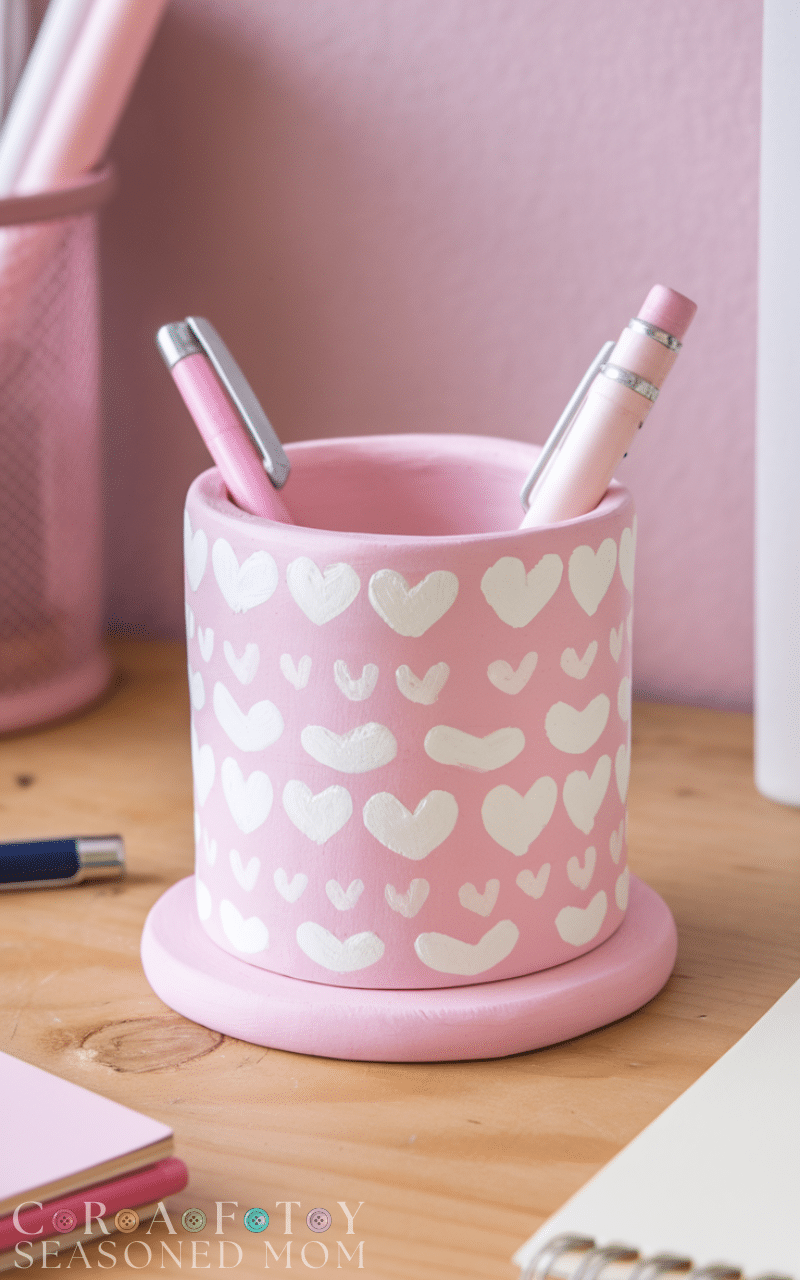 You can make a cute pen holder using air dry clay by forming a cylinder or square shape and adding some design patterns before it dries and once finished you can paint it in pastel or metallic tones and this easy air dry clay project is ideal for organizing your desk in a stylish and creative way.