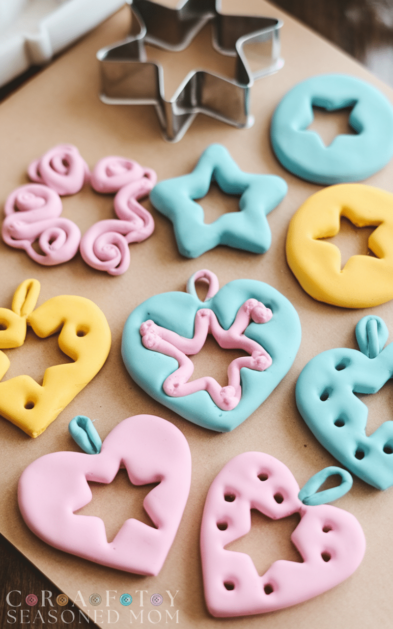 Air dry clay ornaments are perfect for any celebration or for decorating your home all year round and you can cut shapes using cookie cutters add holes for hanging and paint them once dry and this easy air dry clay project is charming simple and brings joy every time you hang them on a tree or wall.