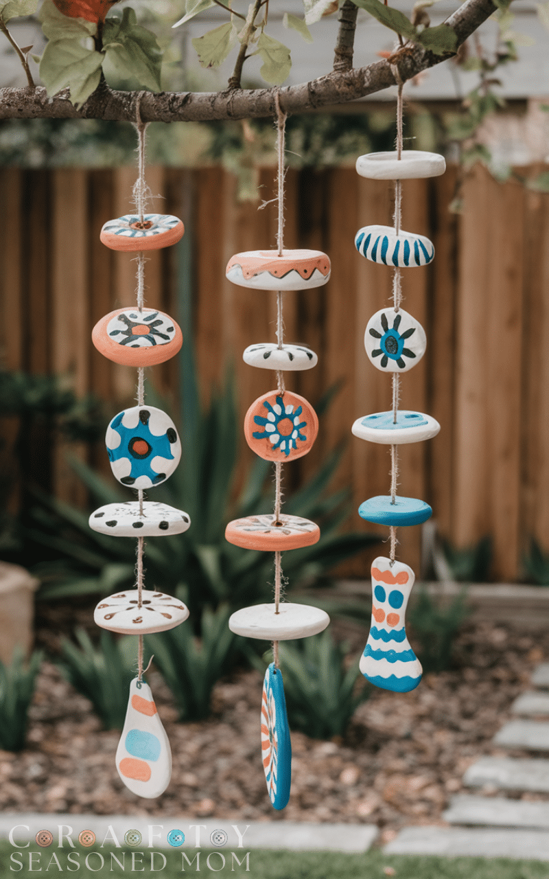 You can make soothing wind chimes using air dry clay and create small discs or shapes and paint them after drying then tie them with string and hang them to let the wind create gentle music and this easy air dry clay project is peaceful and adds a cozy boho vibe to your balcony or garden.
