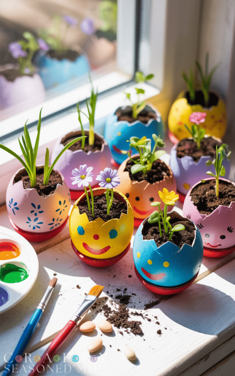 Reuse eggshells as tiny planters for sprouts or flowers. Kids can paint the shells and fill them with soil and seeds, watching their plants grow over time. This eco-friendly craft is both educational and fun, teaching children about plant life while keeping them engaged. Eggshell planters are a wonderful addition to your list of easy spring crafts for kids, as they combine creativity with a hands-on science activity.