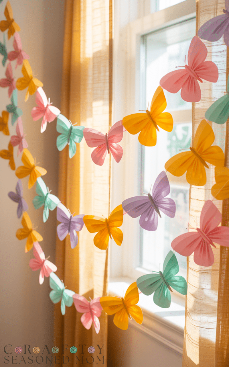 A paper butterfly garland is a lively way to decorate any room for spring. Kids can fold and cut colorful paper to make butterflies and string them together. It’s an engaging project that helps them practice patience and precision while making a beautiful spring decoration. This easy spring craft for kids is versatile—you can hang it in their room, around the classroom, or even outdoors for a cheerful spring vibe.