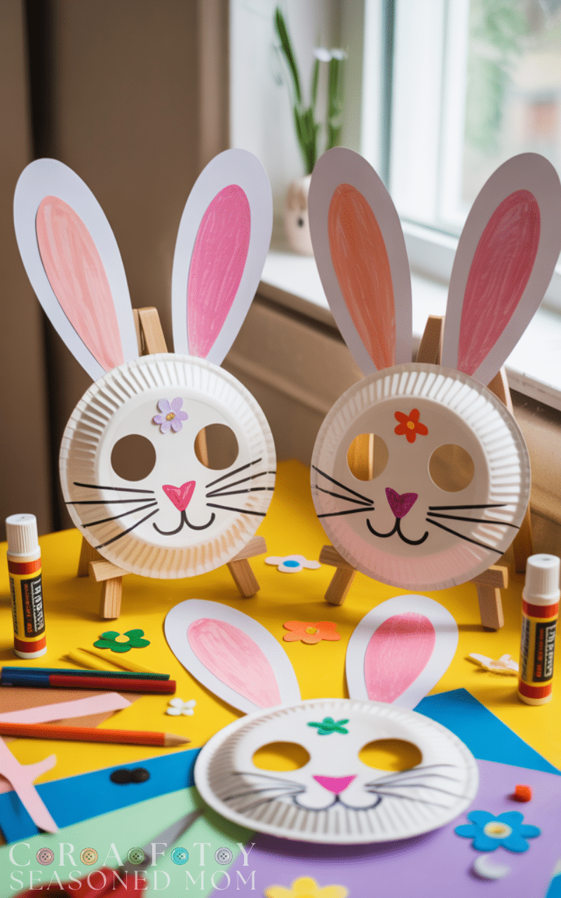 Kids can make spring crafts bunny masks from paper plates, adding ears, whiskers, and colorful details. This easy spring craft for kids is perfect for role-playing, storytelling, or a spring-themed event. It encourages creativity, fine motor skills, and imaginative play, making it a versatile project that’s both entertaining and educational.