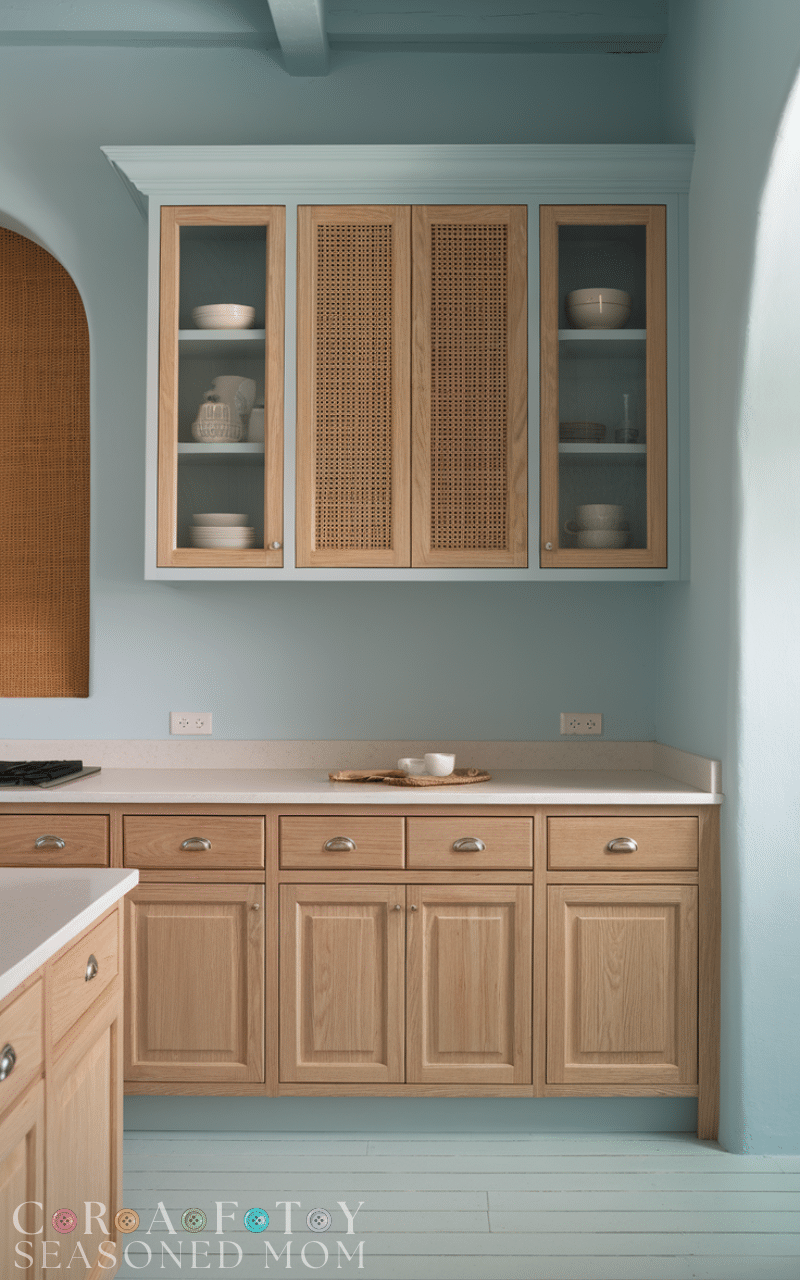 Kitchens with white oak cabinets fit perfectly in coastal designs. Pair them with light blue accents, white quartz countertops, and woven textures. The light oak tones reflect a beachy, relaxed vibe that feels bright and refreshing.