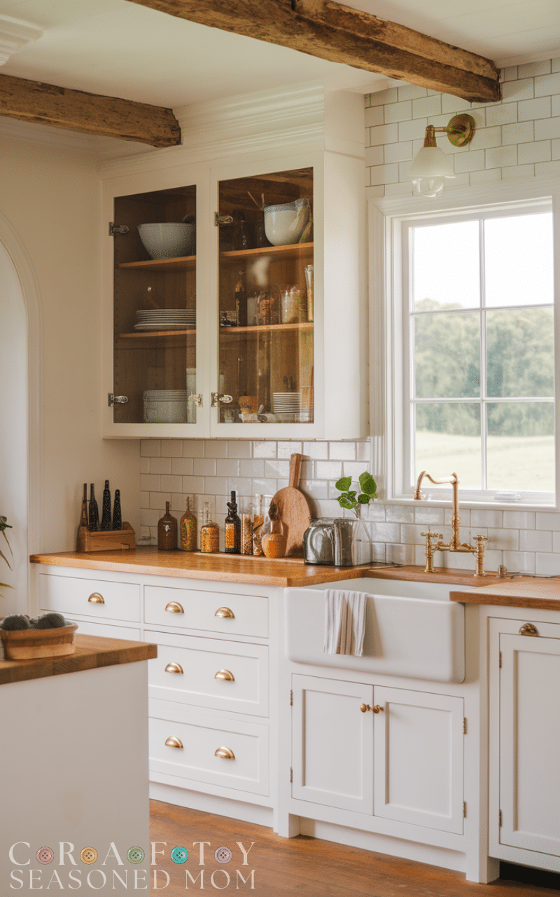 Kitchens with white oak cabinets fit beautifully in farmhouse spaces. Pair them with apron-front sinks, brass hardware, and subway tile backsplashes. The soft wood tones complement rustic beams and vintage accents, creating a welcoming and cozy cooking environment full of character.