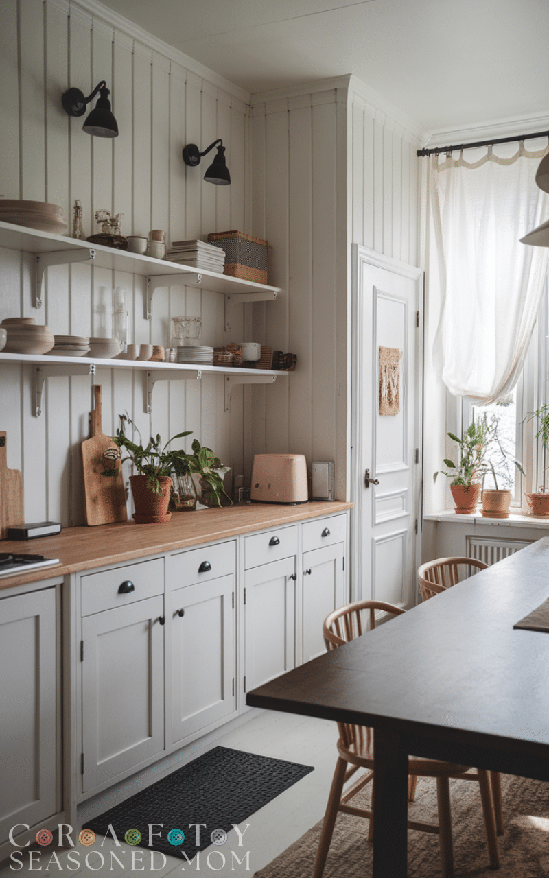 Scandinavian kitchens with white oak cabinets focus on simplicity, light, and function. Combine white oak lower cabinets with white walls and open shelving for an airy feel. Add matte black fixtures and soft textiles to balance warmth and contrast. This style embraces natural light and keeps décor minimal yet inviting.