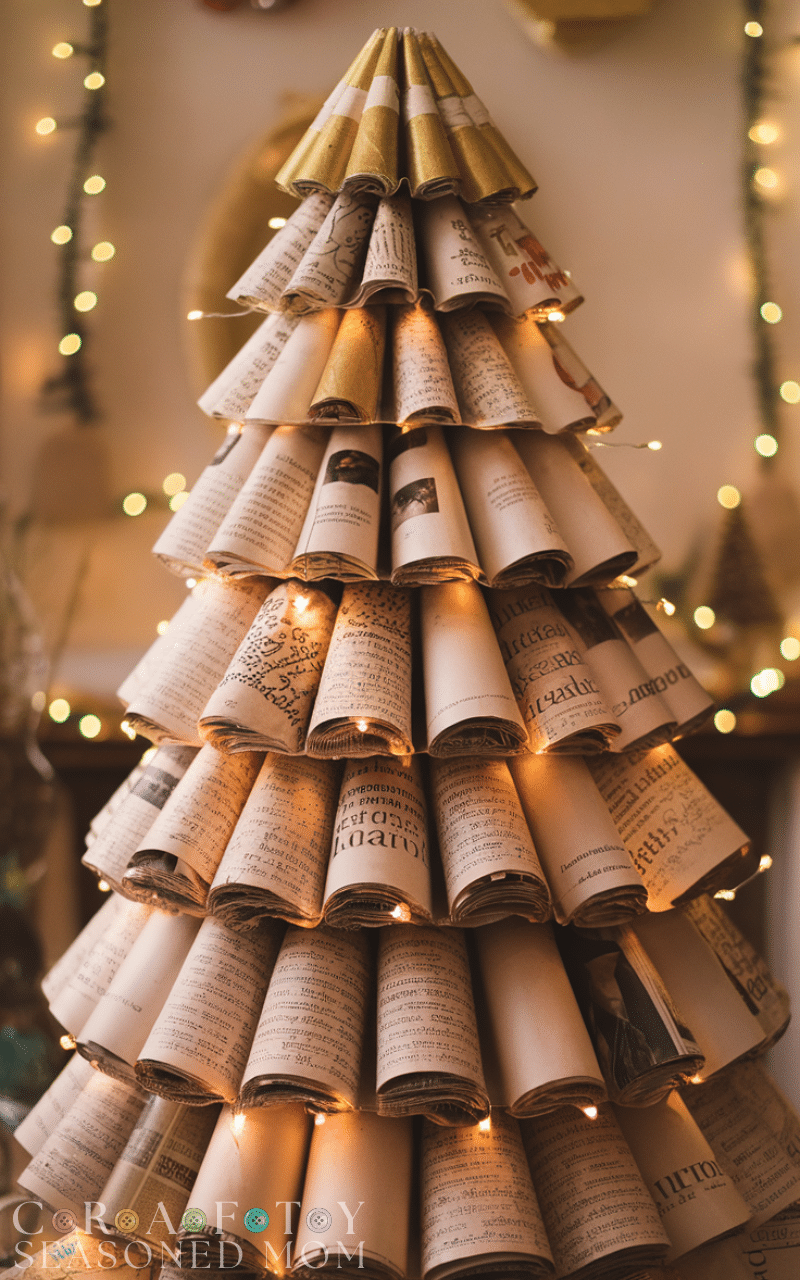 Finally the recycled paper tree tops the list as the most creative Christmas tree for eco conscious decorators. You can use old magazines newspapers or sheet music folded or rolled into cone shapes and stacked together to form a tree. Add some sparkle with gold paint or lights. This creative Christmas tree spreads a meaningful message about sustainability and creativity while still bringing warmth and beauty to your holiday celebration.