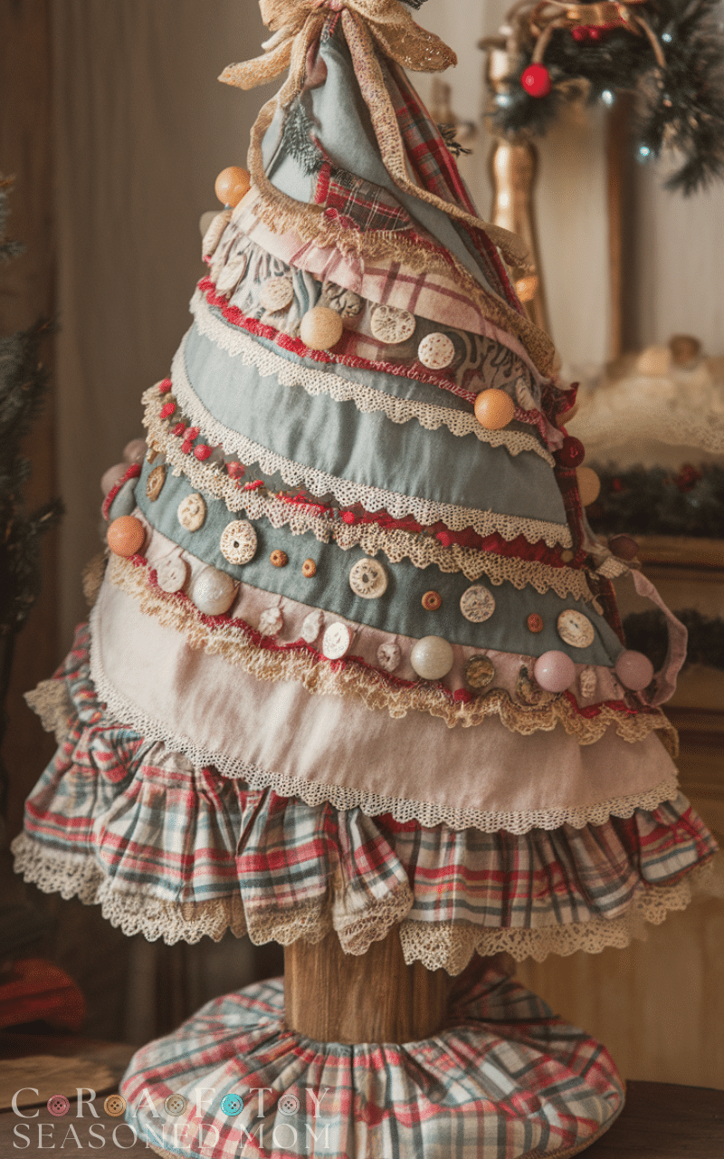 A fabric wrapped tree is a soft and colorful version of the classic tree and one of the most creative Christmas trees you can design. You can wrap a cone made of cardboard or wire with festive fabrics like plaid velvet or linen so it matches your decor theme. Add buttons ribbons or lace for extra charm. This creative Christmas tree gives a cozy handcrafted touch to your home and works wonderfully as a centerpiece or in small spaces that need some gentle holiday magic.