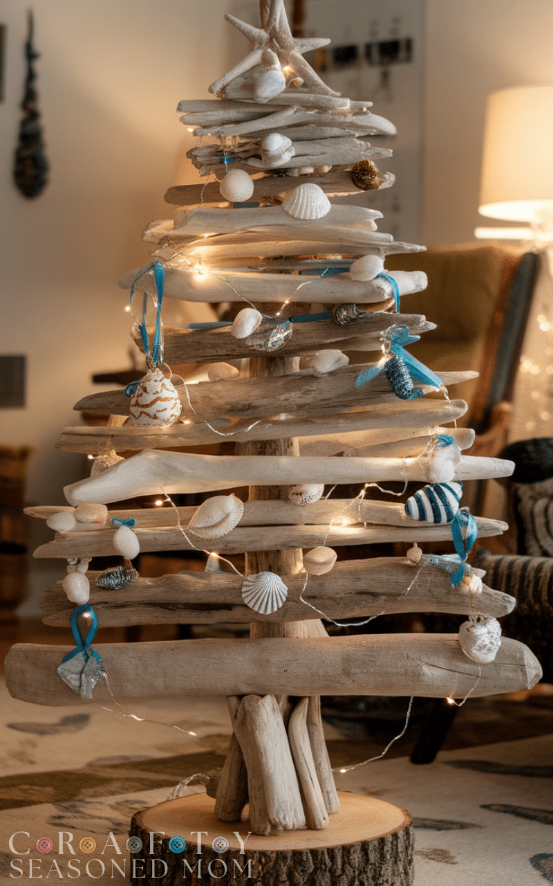 For a beachy and relaxed vibe the driftwood tree stands out as one of the most creative Christmas trees ever made. You can collect driftwood pieces of various lengths and arrange them from longest to shortest so they form a triangle shape. Hang shells ribbons or ocean themed ornaments and finish with twinkling white lights. This creative Christmas tree brings the calm spirit of the seaside into your living room while still capturing the warmth of the holiday season.