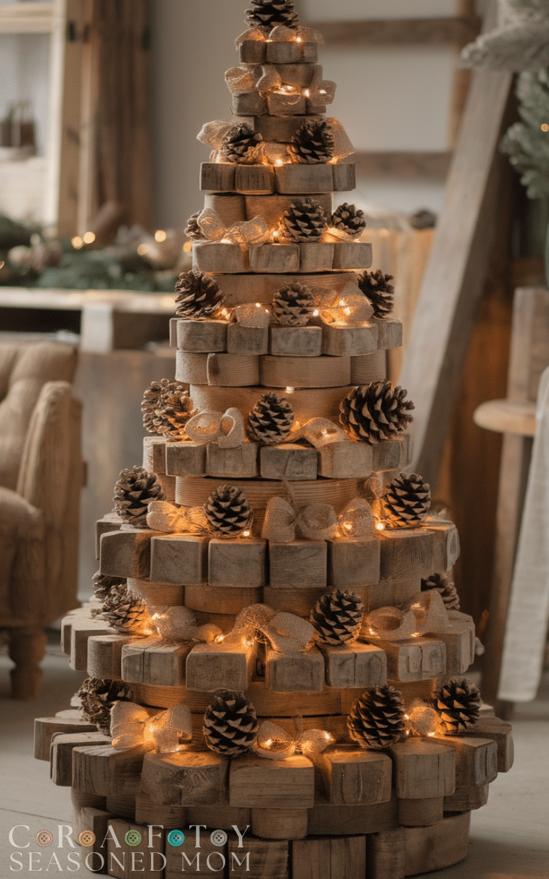 If you adore farmhouse charm then a rustic wooden tree is one of the most creative Christmas trees you can craft. You can use reclaimed wood planks or branches arranged in layers to form a tree shape and then decorate it with pinecones burlap ribbons and white lights for a cozy countryside look. This creative Christmas tree is eco friendly since it uses natural materials and it brings a warm and nostalgic feeling to your holiday decor while blending perfectly with neutral tones and rustic furniture.