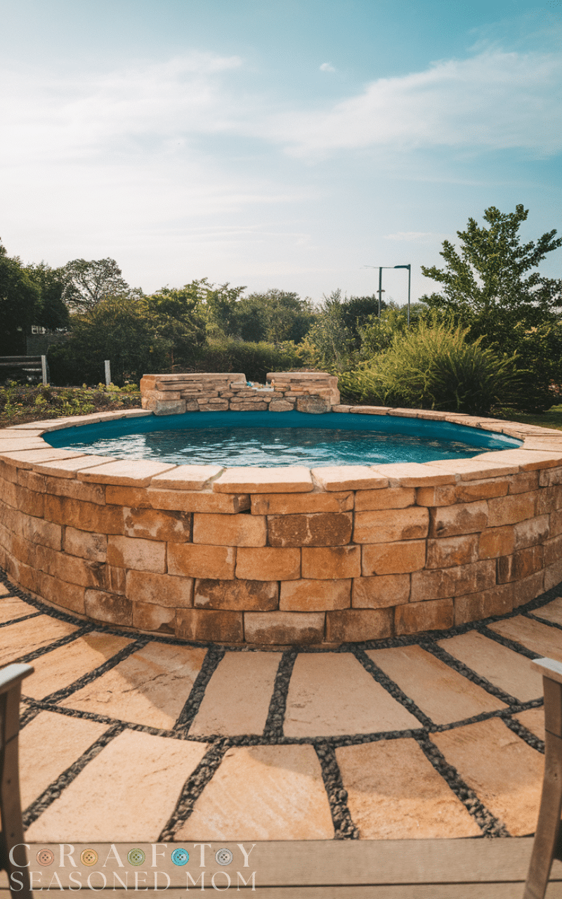 Using natural stone around the pool is one of the most elegant above ground pool ideas. Stone adds texture, durability, and a timeless look. It blends beautifully with gardens and outdoor plants. Pairing stone with wooden accents creates balance and warmth. These above ground pool ideas offer both strength and sophistication, making your backyard feel polished and well-designed.