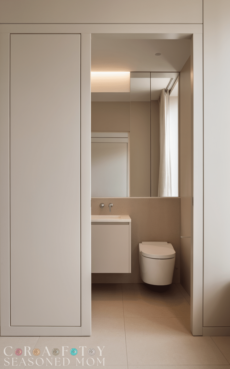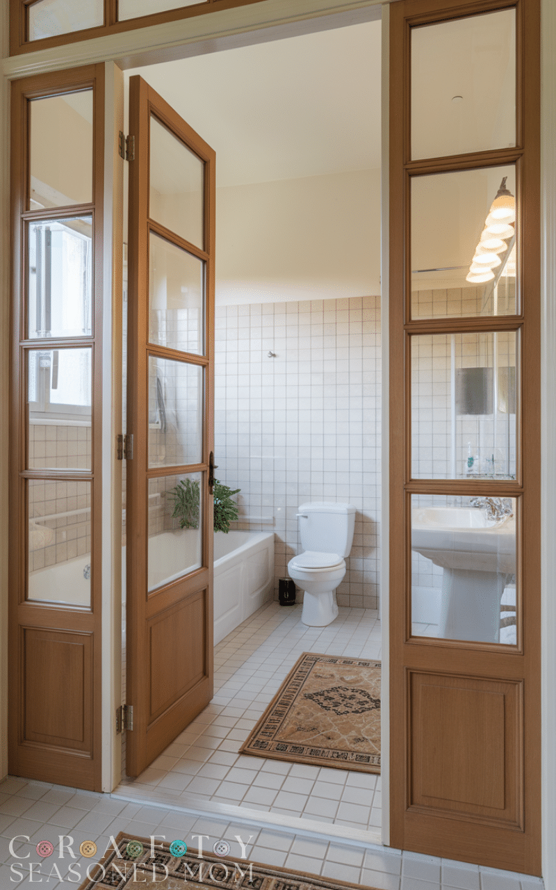 It is incredibly frustrating to find that your contractor has opened the walls only to discover a load-bearing beam, leaving you stuck with a door that either smacks into the vanity or swings out into the dining room, exposing the family to “noises” they’d rather not hear during dinner. Without a clever way to balance privacy and floor space, you’re often left with awkward gaps, loud hinges, and a room that feels more like a design flaw than a functional retreat.