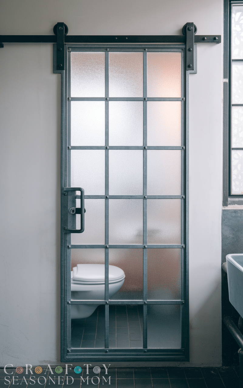 Metal frame bathroom door ideas bring durability and a modern edge. Often combined with frosted or textured glass, they create a stylish industrial look. These doors are strong, resistant to warping, and suitable for humid environments. These bathroom door ideas are perfect for contemporary homes that embrace bold materials and clean lines.