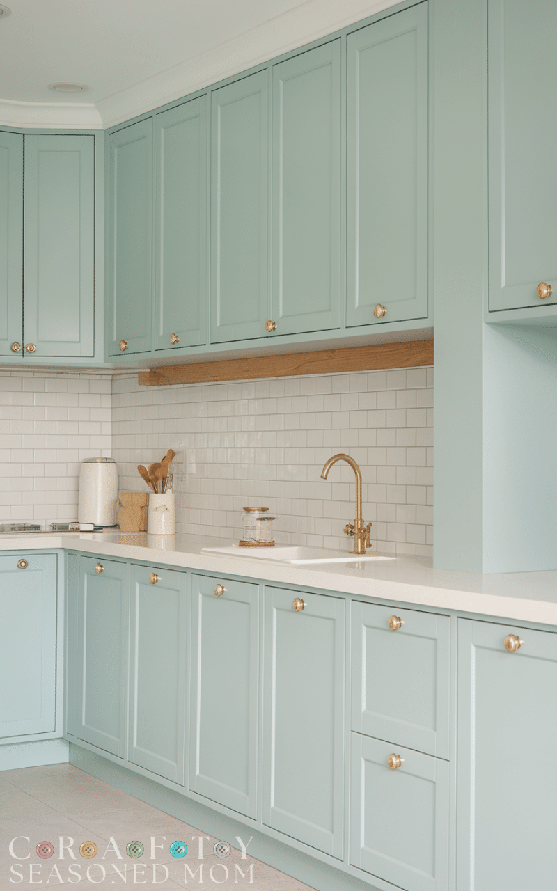12. Soft Powder Blue Cabinets With Gold Knobs