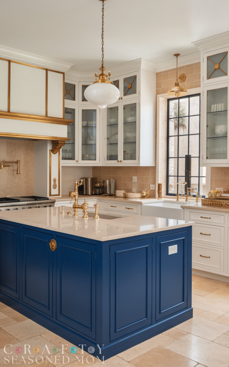 Blue and Gold Kitchen styling also makes decorating feel easier because there are so many small touches that can transform the atmosphere without needing a full renovation. I like how something simple like gold handles, lighting, or a painted island can change the mood of the entire space, and once I began noticing these details, I started collecting my favorite Blue and Gold Kitchen ideas that felt practical enough to try in everyday homes, not just in magazines.