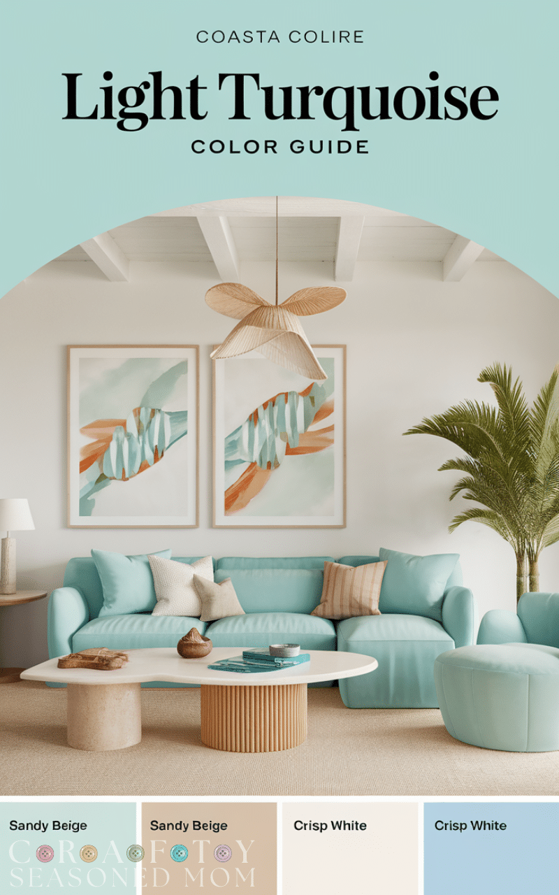 Light turquoise adds tropical energy to a coastal color guide while still maintaining softness. This color works beautifully for statement furniture or accent walls in smaller spaces. In a coastal color guide, light turquoise pairs well with sandy beige and crisp white for a clean and refreshing effect. It feels playful yet sophisticated when balanced correctly. Including light turquoise in your coastal color guide helps create a lively atmosphere that still feels breezy and harmonious.