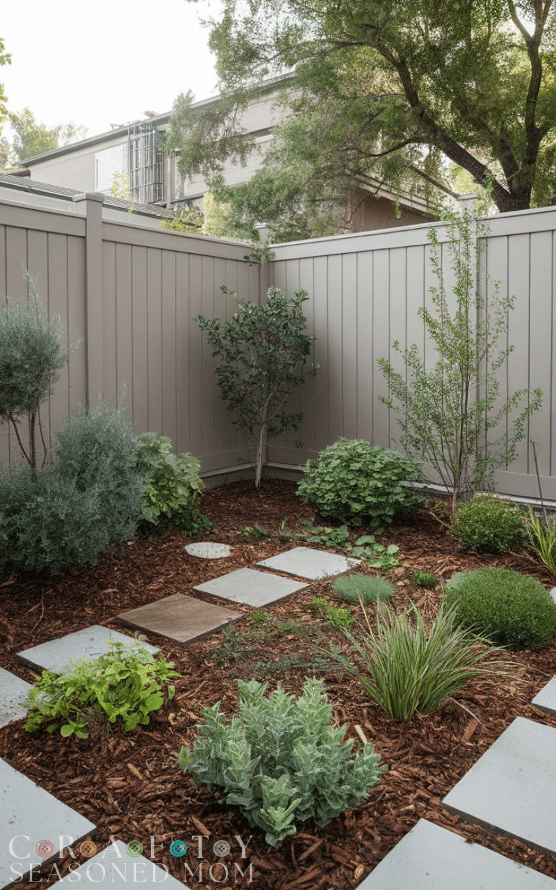 A simple, low-maintenance design is often the best choice. This corner garden idea focuses on hardy plants, mulch, and clean lines to reduce upkeep. It’s perfect for busy homeowners who want a neat, attractive corner without constant care, proving that simplicity can be just as impactful.
