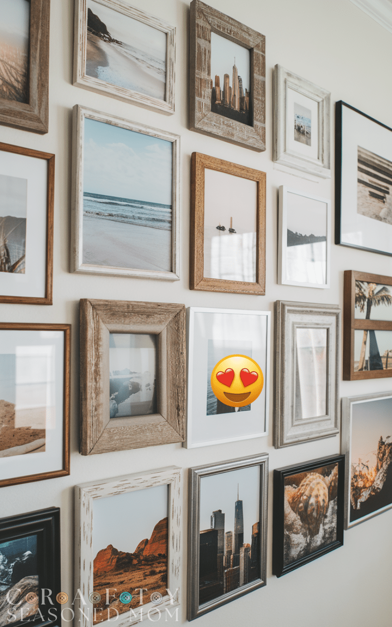 Creating a gallery wall with family photos or travel memories is one of the most personal diy wall art ideas. Use matching frames for a clean look or mix styles for a relaxed feel. This approach fills large wall spaces beautifully while telling your story through images.