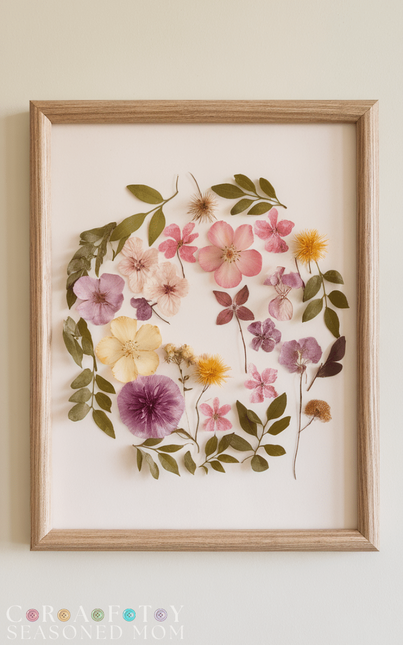 Pressed flowers or leaves create timeless, natural art. This diy wall art idea works beautifully in living rooms or bedrooms. Once pressed and framed, botanicals add softness and elegance. It’s a low-cost way to bring nature indoors while creating meaningful, handmade decor.