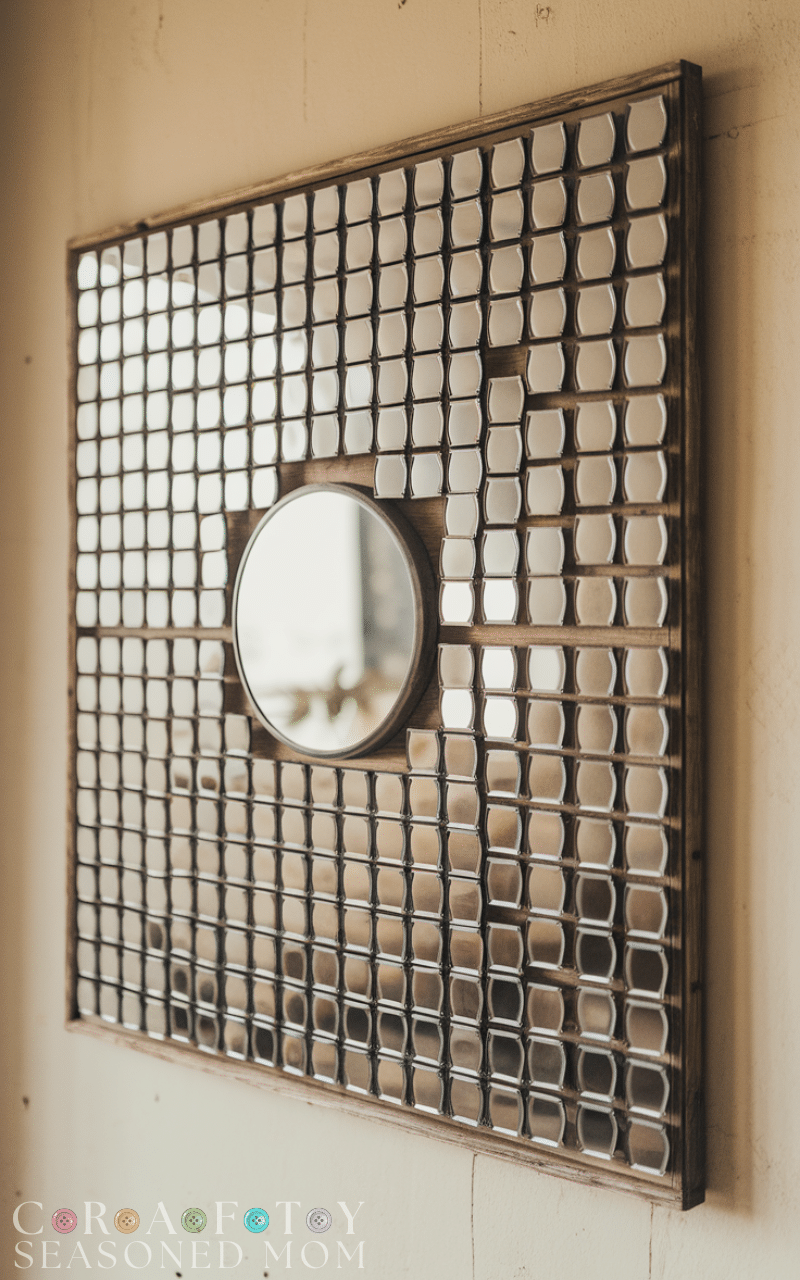 Mirrors aren’t just functional, they’re decorative too. This diy wall art idea involves arranging small mirrors in a pattern. It adds light and dimension to the room while serving as a unique visual feature on the wall.