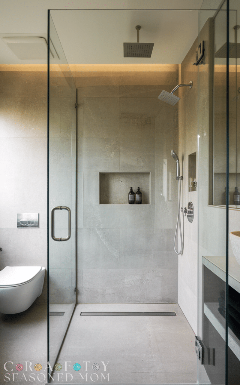 A clear glass shower enclosure instantly makes the bathroom feel larger and more modern. Frameless designs emphasize clean lines and openness, creating a sleek, elegant look. Elegant guest bathroom ideas with glass showers showcase your tiles, fixtures, and space without visual interruption. Pair with rainfall showerheads, subtle lighting, and minimalistic hardware to enhance the luxurious vibe. The transparency of glass keeps the bathroom bright and airy, while also emphasizing the overall design aesthetic, leaving a lasting impression on your visitors.