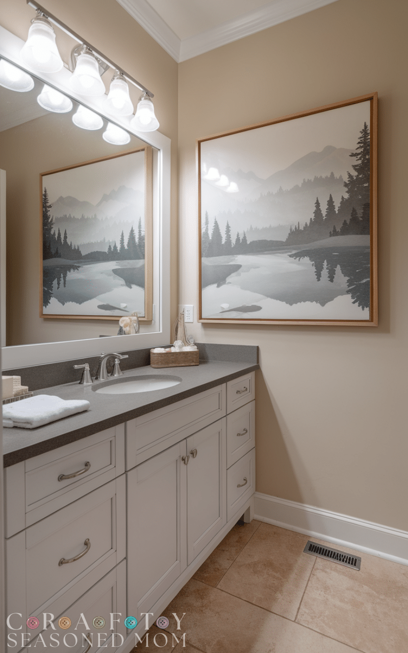 Adding framed artwork or tasteful prints injects personality and style into your guest bathroom. Choose pieces that coordinate with your color palette and overall theme to maintain a polished, elegant look. Elegant guest bathroom ideas with wall art elevate the space, making it feel curated and thoughtful. Whether it’s botanical prints, abstract designs, or serene landscapes, art creates visual interest without taking up valuable space. Rotating artwork seasonally or featuring small collections adds a dynamic, stylish touch that guests will notice and appreciate.