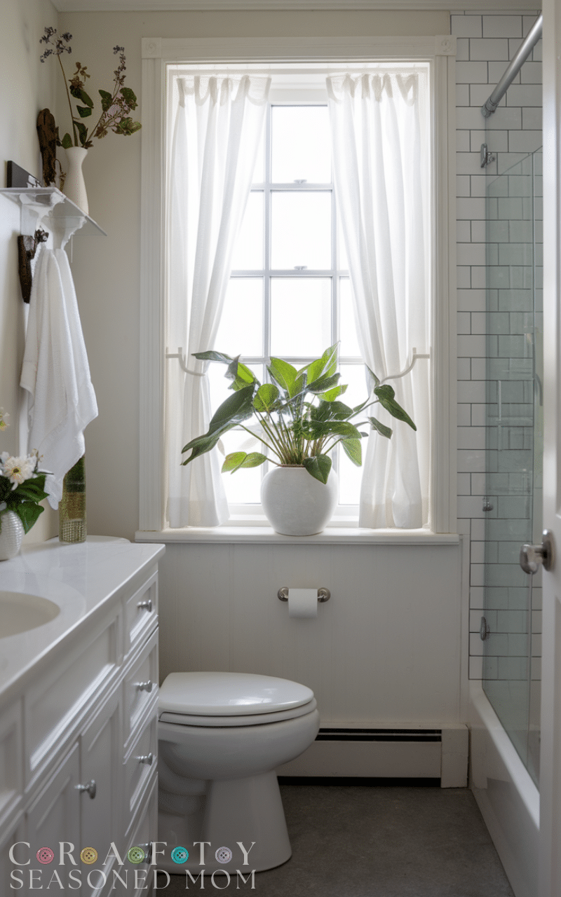 Adding greenery instantly elevates elegance and freshness in a guest bathroom. Small potted plants, hanging planters, or succulents thrive even in limited spaces with indirect light. Elegant guest bathroom ideas featuring plants bring life and a sense of calm, creating a spa-like experience. Choose low-maintenance options like pothos, ferns, or peace lilies, which also improve air quality. Green accents contrast beautifully with neutral tones or marble surfaces, and the natural touch adds sophistication and warmth that guests can’t help but admire.