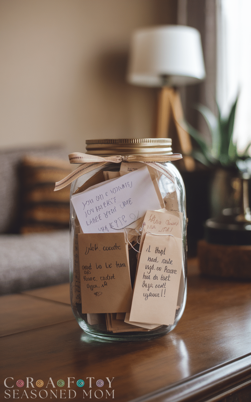 Place a memory jar where guests can write notes, wishes, or advice for your new home. This sentimental housewarming party idea on a budget costs almost nothing but creates lasting memories, making your celebration meaningful and personal for everyone involved.