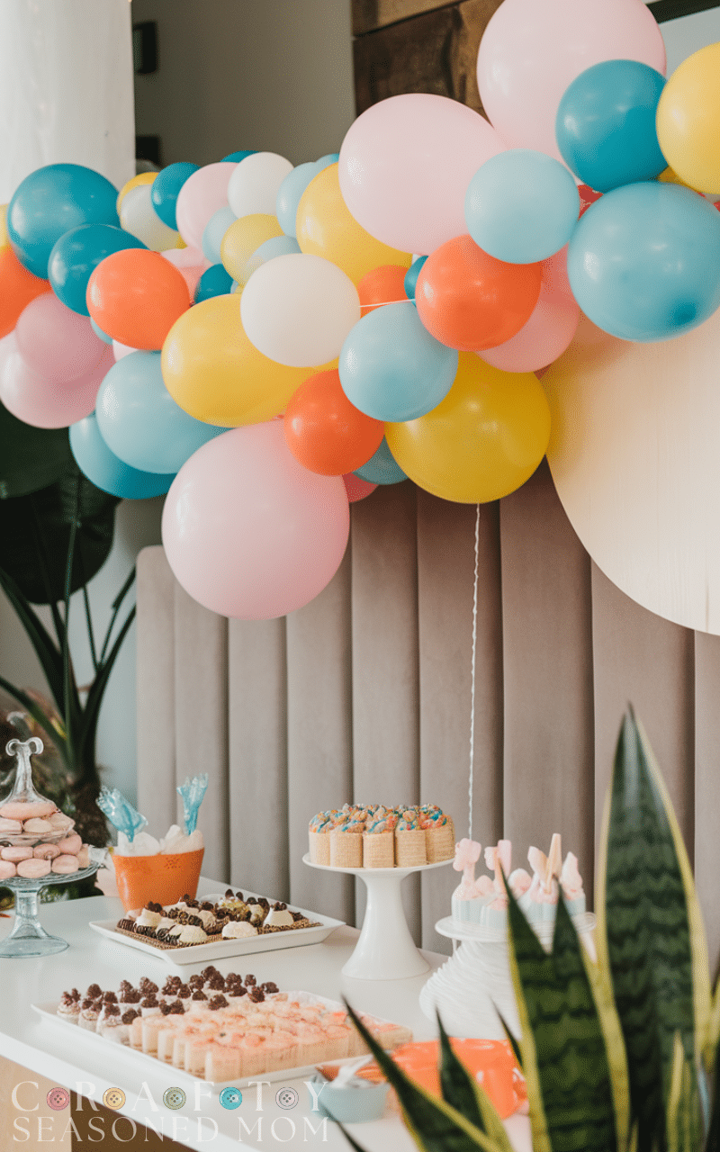 A DIY balloon garland is a simple, affordable way to add instant color and fun to your housewarming party. With just balloons, string, and a little creativity, you can make a statement piece for your entryway or behind the dessert table. This housewarming party idea on a budget looks impressive but costs very little, giving your party a festive vibe without spending a fortune, and it’s fun to assemble with friends or family before the celebration.