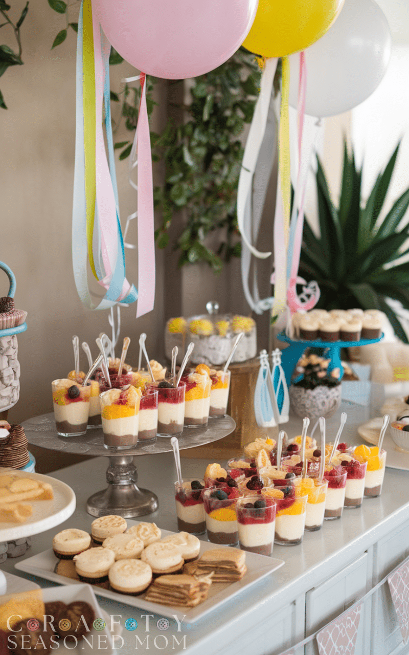 Serve desserts in small cups or jars for portion control and cost savings. Layer pudding, fruit, or mousse for a visually appealing and budget-friendly treat. This housewarming party idea on a budget is practical, easy to prep ahead, and makes your dessert table look professional without needing expensive cakes or pastries.
