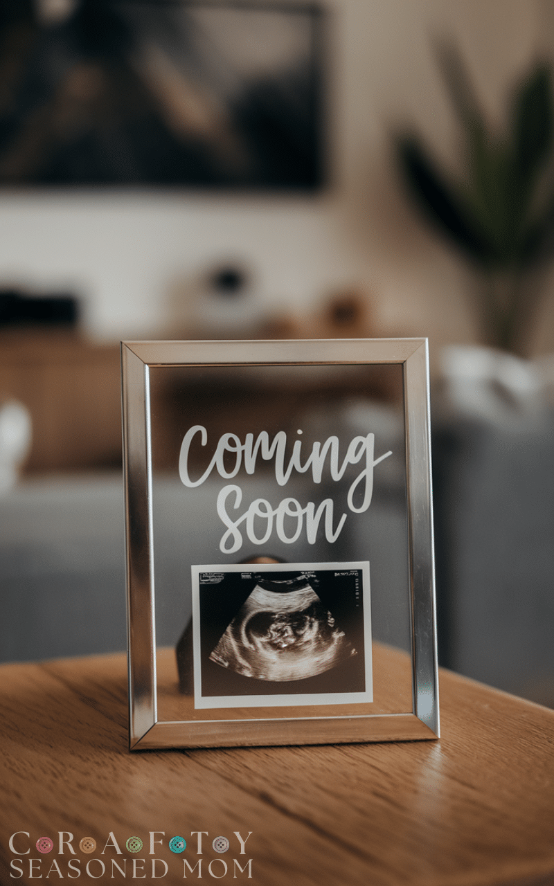 Using a photo frame is a creative and sentimental ideas to tell your parents you’re pregnant. You can place a message like “Coming Soon” or include an ultrasound photo inside the frame. This method turns your announcement into a keepsake they can display in their home. It combines emotion and surprise while making the moment extra special and personal.