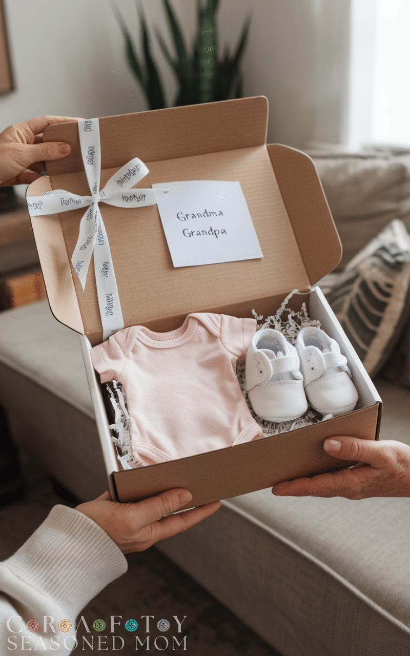 A gift box surprise is a classic and emotional ideas to tell your parents you’re pregnant. You can include baby shoes, a onesie, or a note saying “Grandma” and “Grandpa.” Watching them open the box and realize the meaning creates a priceless moment. This idea allows you to capture reactions and create a memory you’ll cherish forever. It’s a thoughtful and meaningful way to share your pregnancy news.