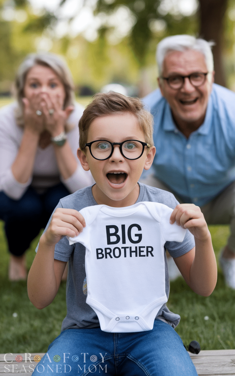 Including a sibling or family pet is a fun and playful ideas to tell your parents you’re pregnant. A shirt that says “Big Brother” or “Big Sister,” or even a pet bandana with a message, adds joy and surprise. This creative approach often leads to laughter and happy tears. It’s especially meaningful for families who love shared moments and photos.